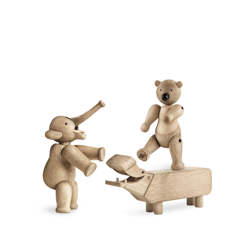 Mød Bjørnen på 9,5 cm, Elefanten på 7,5 cm og Flodhesten på bare 6 cm i højden.