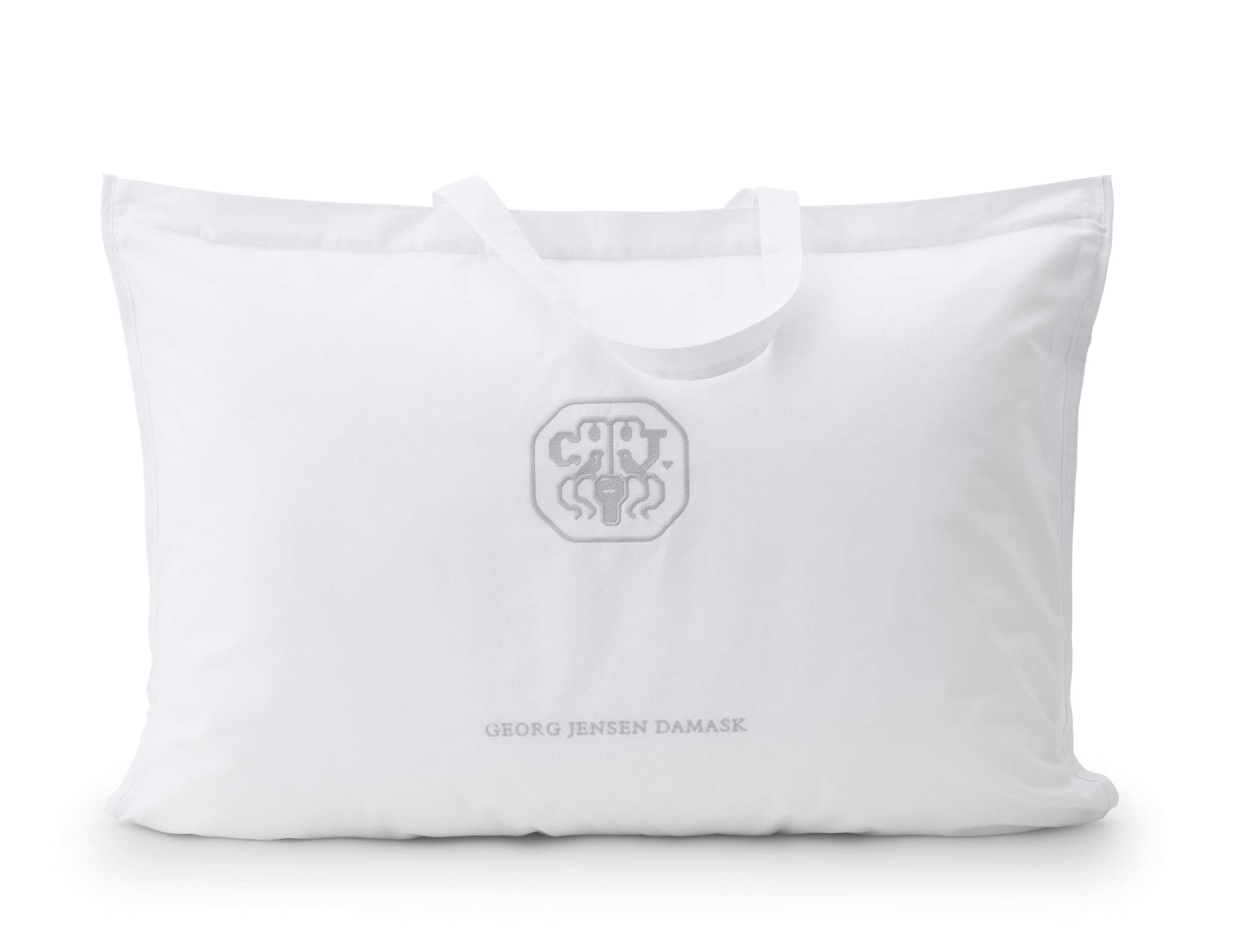 De opspundne, lange fibre griber ind i hinanden og sikrer en optimal ventilation. Fibrene giver dynen en god spændstighed, så den tilpasser sig og omslutter kroppen. Dynen bærer Georg Jensen Damasks ikoniske logo som et diskret broderi – et symbol på kvalitet og omhyggelighed.