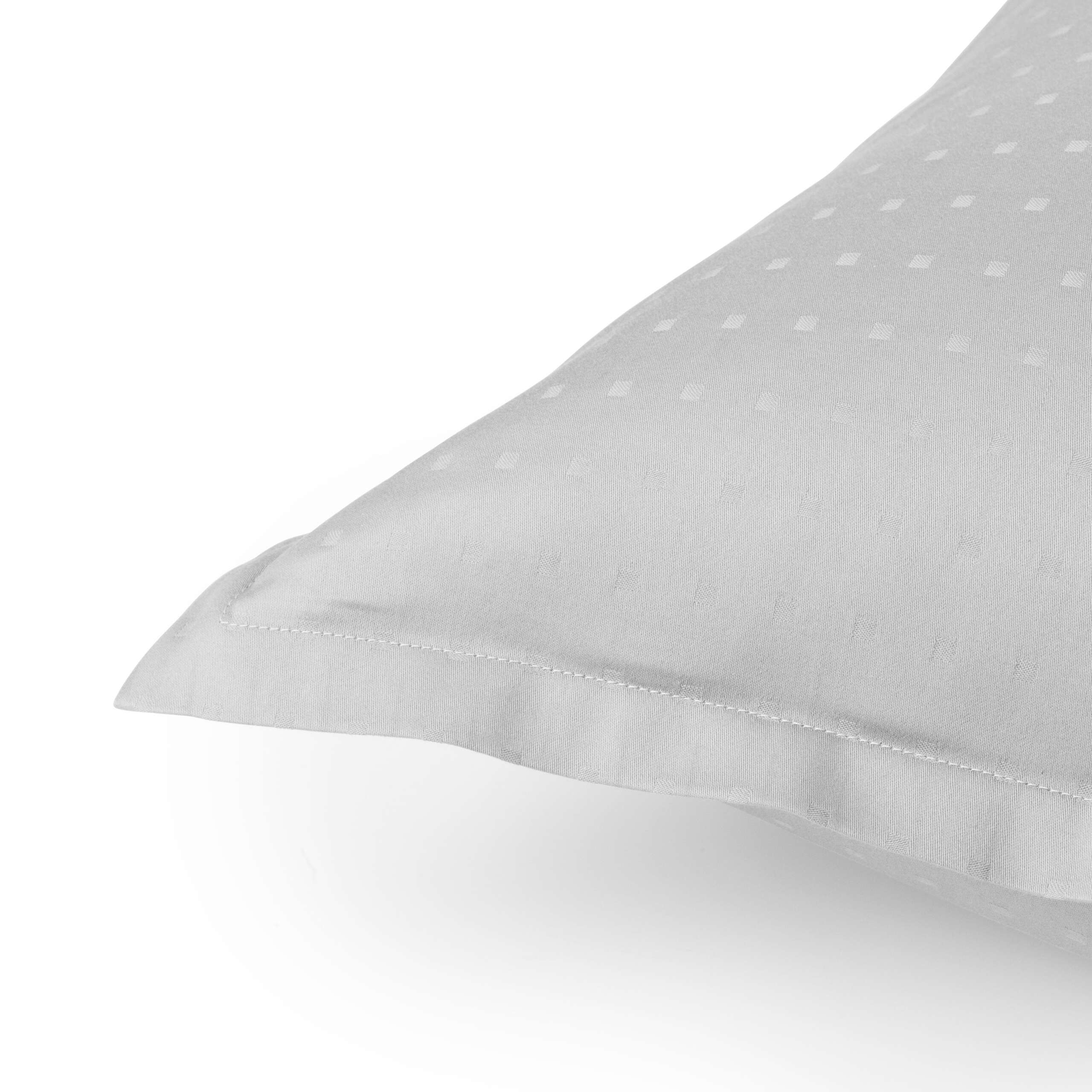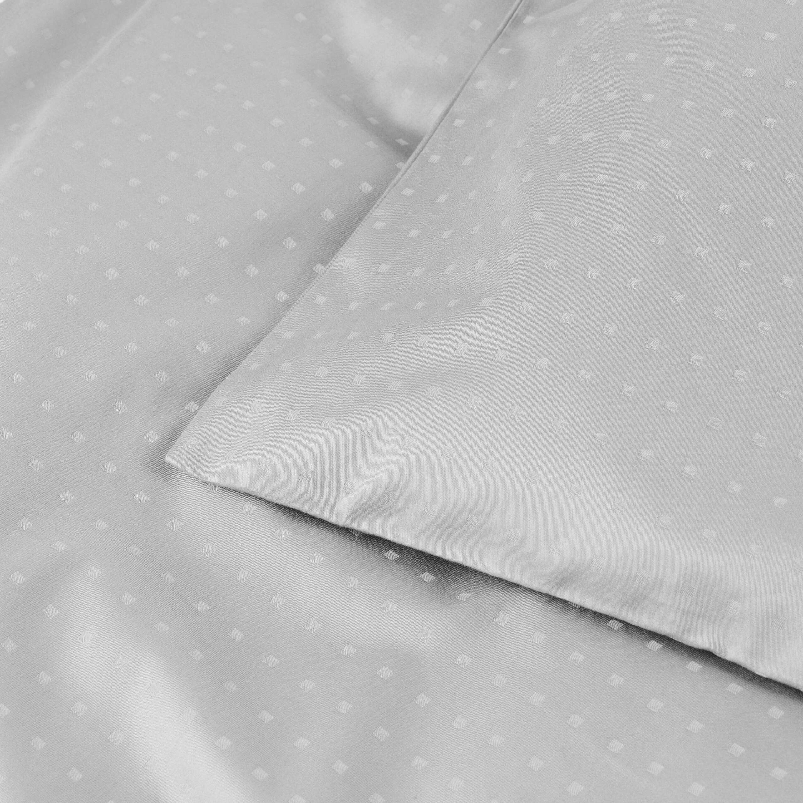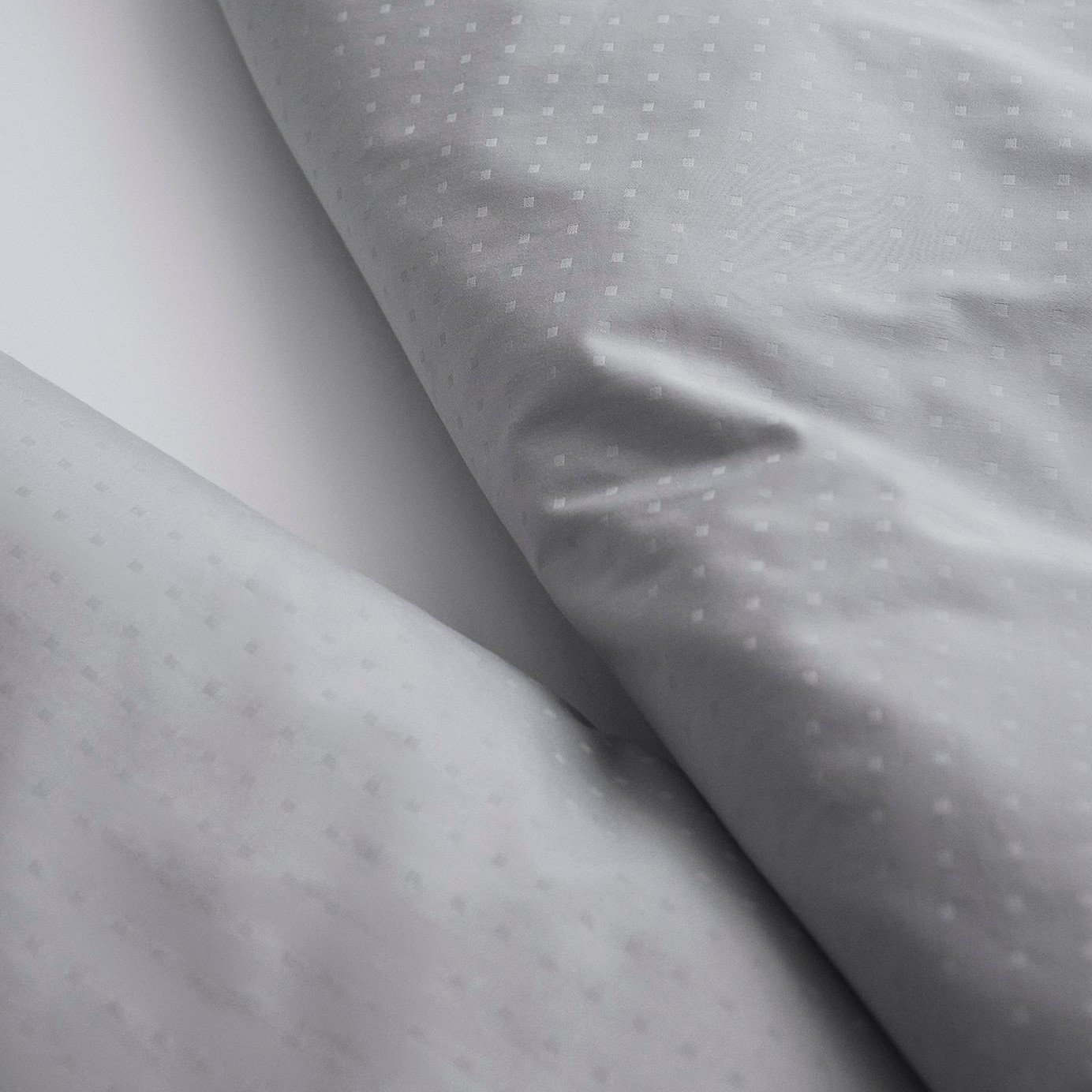 Blødt og glansfuldt sengetøj med geometrisk mønster. Det stringente design med små kuber fremhæves smukt i den reflekterende satinvævning, og giver Sky et både let og harmonisk udtryk.