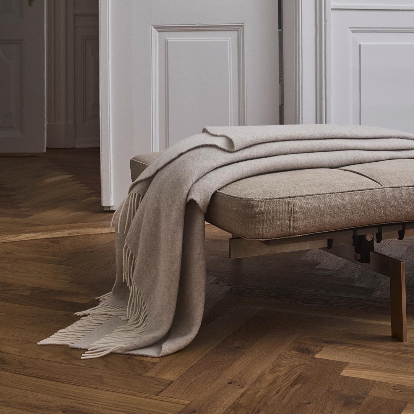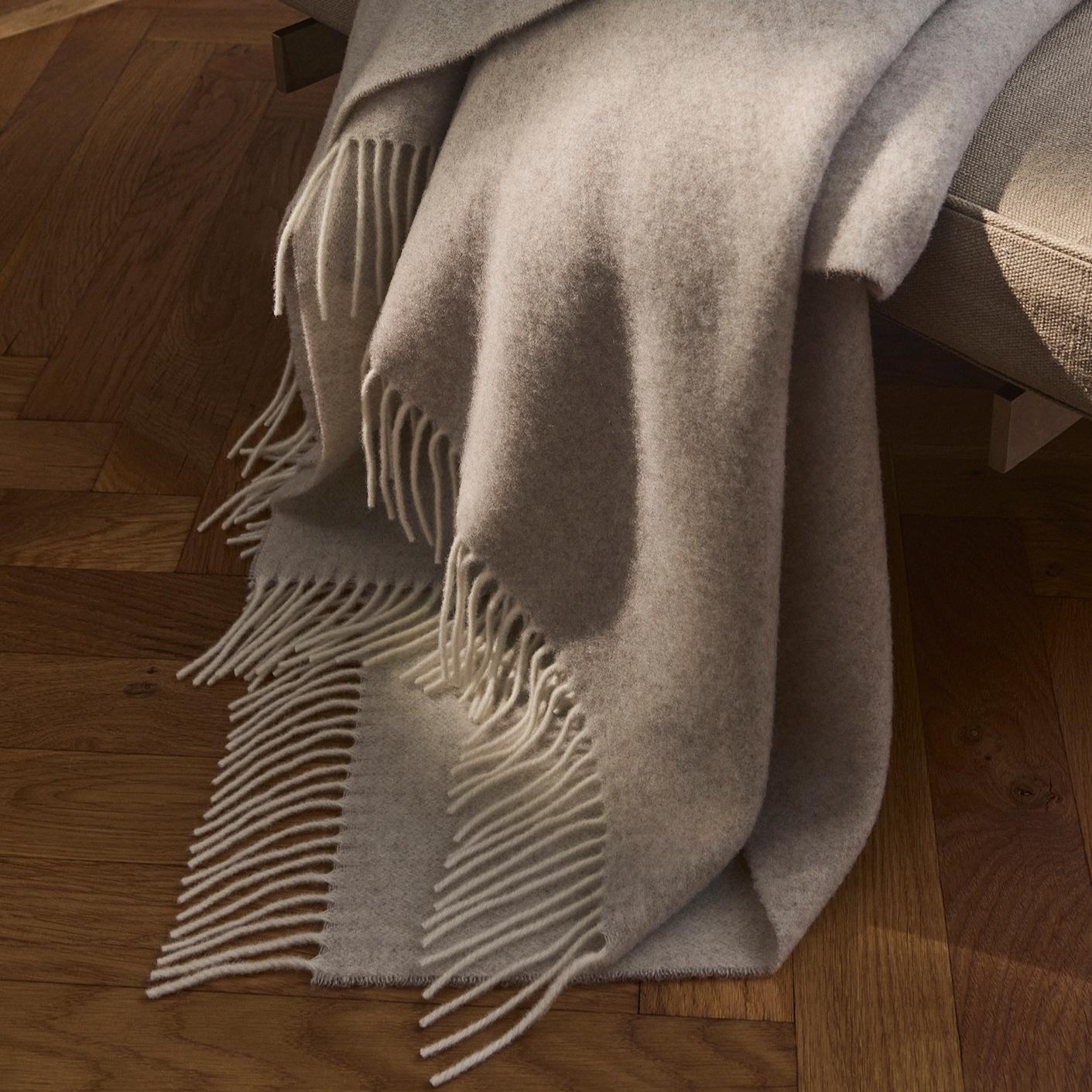 Med en diskret nuanceforskel på for- og bagside og ecrufarvede frynser har plaiden et klassisk og elegant udtryk.